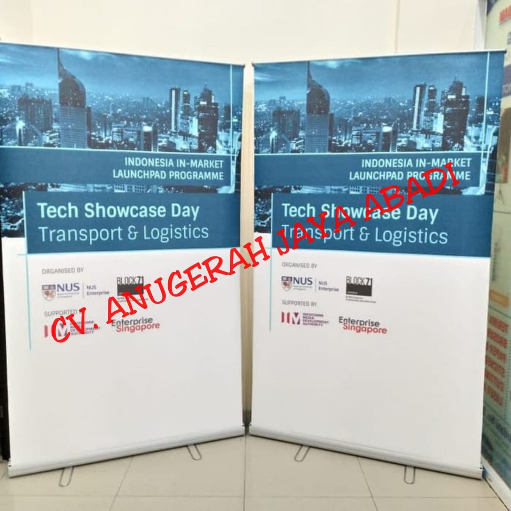 X banner, mini x banner meja, y banner, roll up banner.