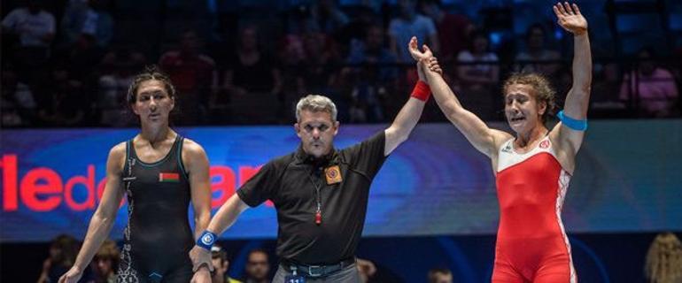 Avrupa ve dünya şampiyonu güreşçimiz yasemin adar ile alman tankı aline rotter focken'in kapışması.